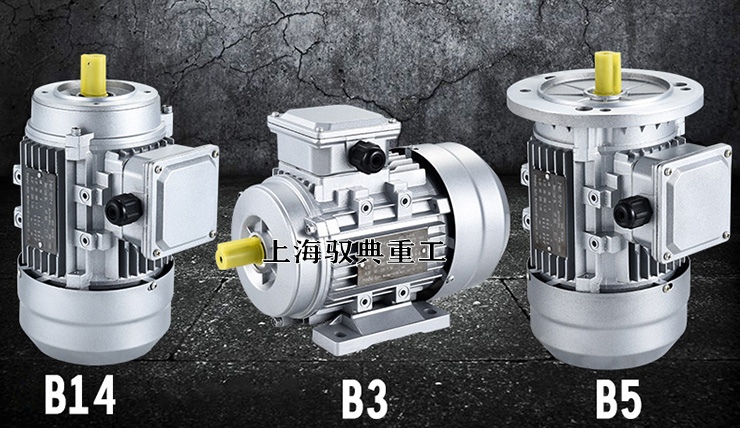上圖所示,是三相異步電機(jī)的三種安裝形式,分別是B14、B3、B5這三種,B3是臥式安裝,通過圖片我們也可以看出,帶地腳的;B14、B5是立式安裝,雖然是立式電機(jī),但是并不代表他一定是立著垂直安裝的,他的安裝孔在上方,可以立起來安裝,也可以平行安裝,具體根據(jù)使用環(huán)境靈活運(yùn)用就可以了。B14是小法蘭安裝,B5是大法蘭安裝。